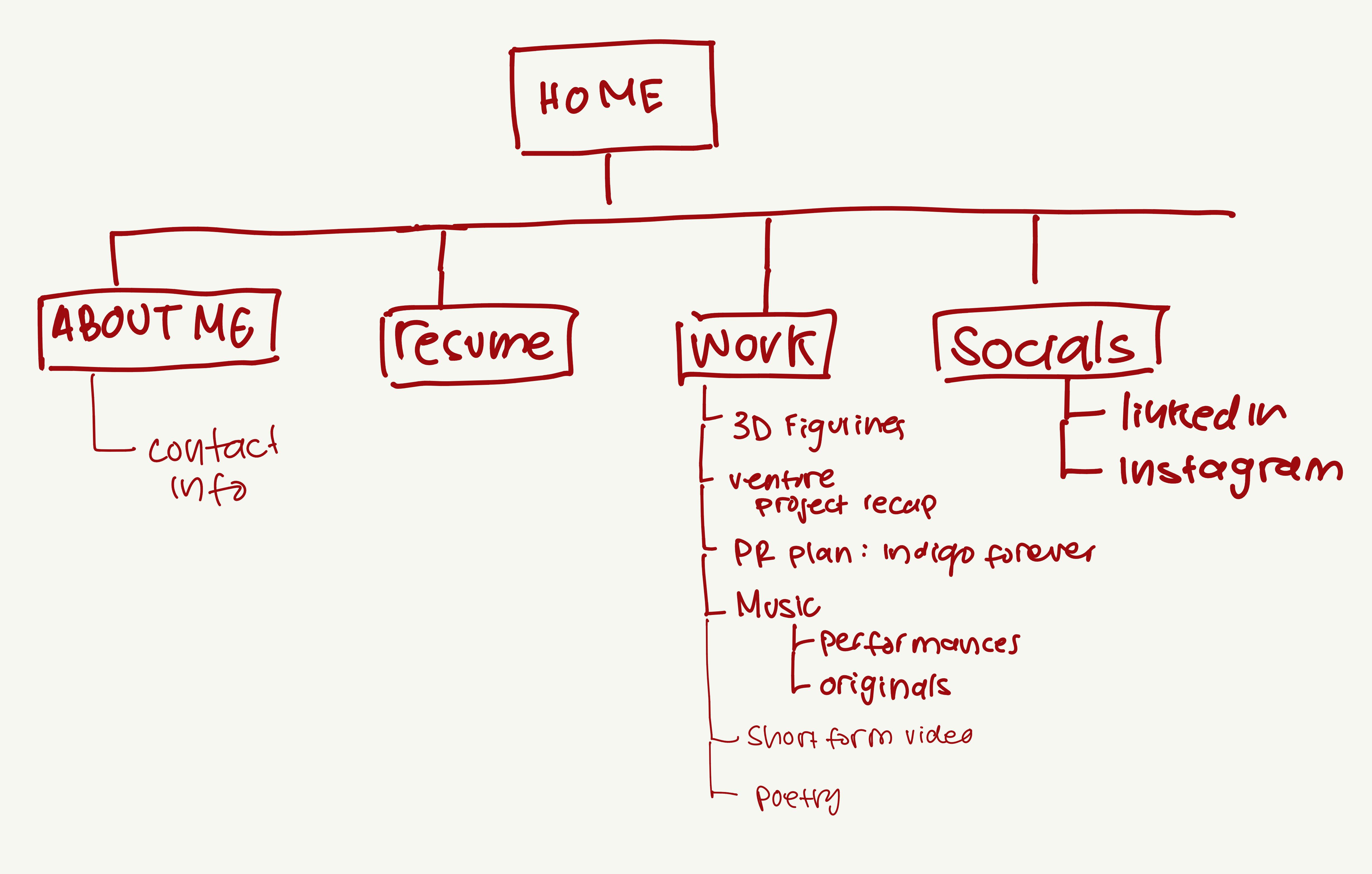 The content of the site will include a home page, an about me section (that includes pictures and a bio), a resume section, the portfolio part (with all my work), and a socials tab (where they can find my contact information, etc)!